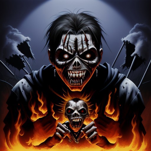 der_rig style, 1boy, male focus, horror theme, <lora:Derek_Riggs_style_Iron_Maiden:1>