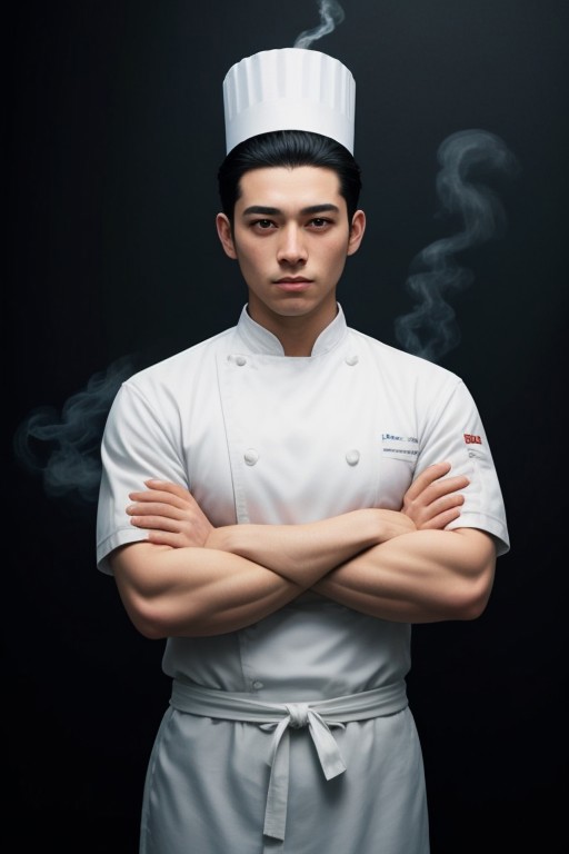 bull cow (made of wagyu), wearing white chef hat, wearing white chef uniform, arms crossed, cinematic movie poster, dark black background, professional photography, dramatic shadows, aura, (fine wisps of smoke:0.8), detailed,