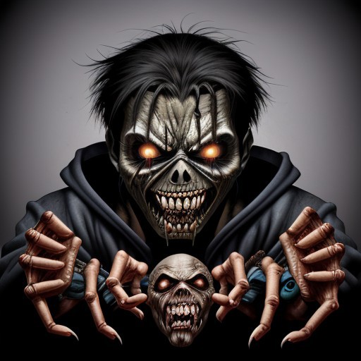 der_rig style, 1boy, male focus, horror theme, <lora:Derek_Riggs_style_Iron_Maiden:1>