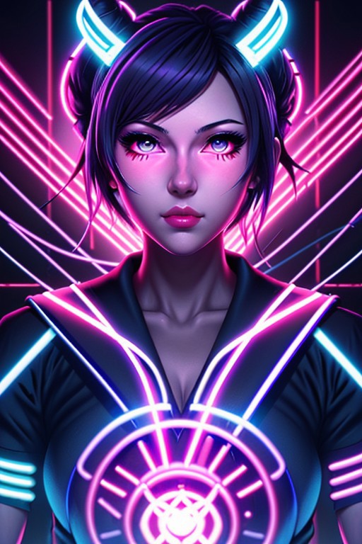 anime girl, sailor uniform, neon lights, glowing lines, digital aesthetic, detailed, vibrant colors, sharp focus, dynamic pose, soft lighting, tech-inspired, cyberpunk style,