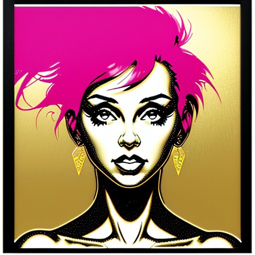 a beautiful 80s punk woman, very detailed pop art style, silhouette with gold foil <lora:SDXLPaintSplash:0.2>