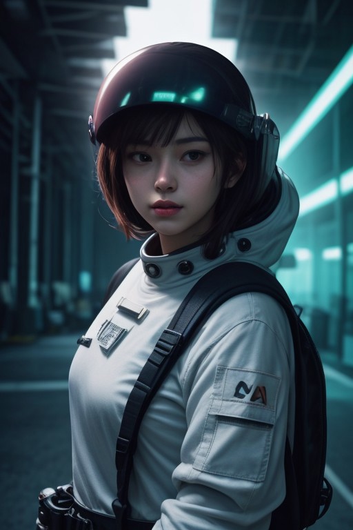 1girl, on an airfield, futuristic astronaut, bulky body armor, hkstyle, full power armor, CHONK, large backpack, (open visor:1.4), (visible face:1.4), waving, neon green accessories, professional illustration, extreme detail, angular brush, iridescent,