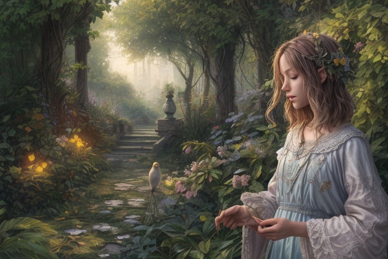 In Elysium's Oasis, a symphony of sound unfolded each morning without fail. Every dawn brought forth an enchanting melody: the gentle rustling of leaves blended with soft chirping birds in perfect harmony.