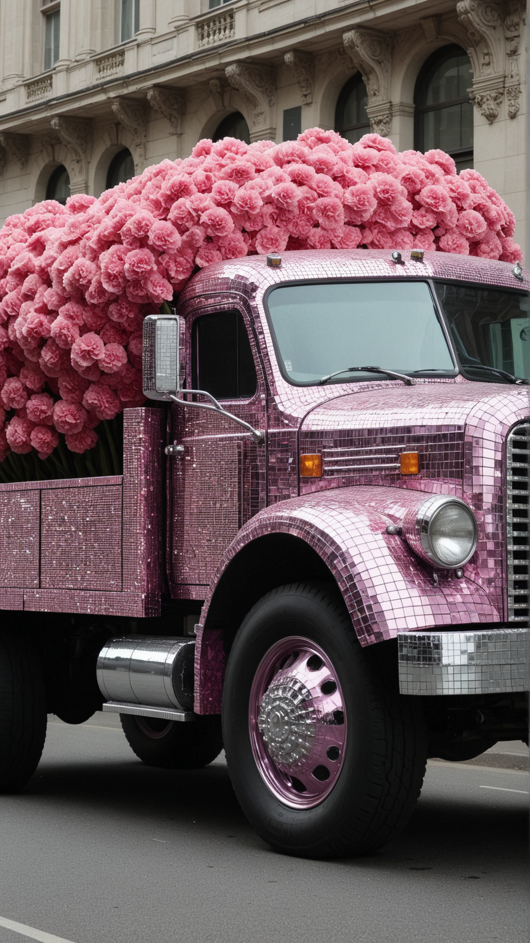 <lora:DiscoBallStyleSDXL:0.6> DiscoBallStyle Carnation truck
