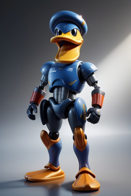 D0nald duck , <lora:d0nald12CIVIT:0.8> , as a robocop