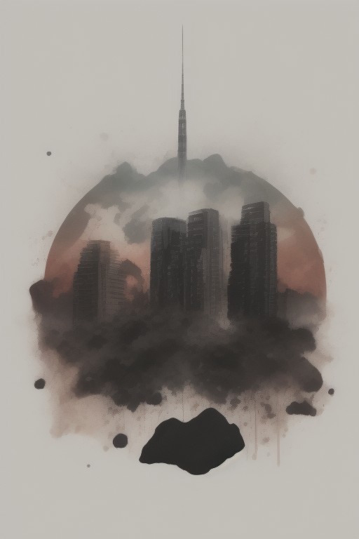 <lora:Calligraphy-ink-style-darquelilly-v1:1> calligraphyinkstyle, red color, skyline, japan, skyscraper, clouds