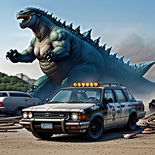 Godzilla wearing Metallica T-shirt, Cars Destroyed, FastNegativeV2, fcNeg,