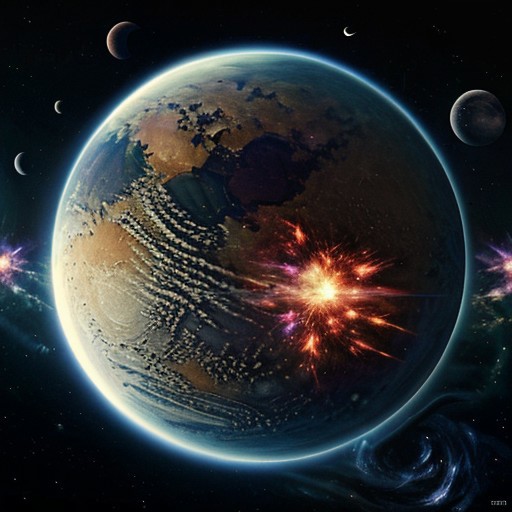 Show me the secrets of the moon. What is the moon?Galaxy background, exploding earth, Hyper-realistic, 16k resolution, intricate details. (masterpiece, award winning artwork) many details, extreme detailed, full of details, Wide range of colors, high Dynamic OverallDetailXL <lora:add-detail-xl:0.95> <lora:WildcardX-XL-Detail-Enhancer:0.9> <lora:xl_more_art-full_v1:0.2>