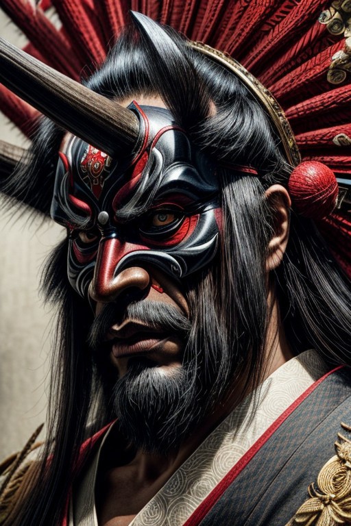 masterpiece, best quality, absurdres, illustration, photorealistic, cinematic, dynamic angle, perfect composition, 1other, oni mask, Japanese folklore, detailed craftsmanship, fearsome look, ceremonial attire, cultural symbolism, festive background