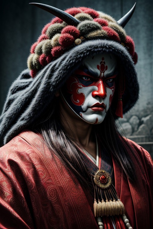 masterpiece, best quality, absurdres, illustration, photorealistic, cinematic, dynamic angle, perfect composition, 1other, oni mask, Japanese folklore, detailed craftsmanship, fearsome look, ceremonial attire, cultural symbolism, festive background