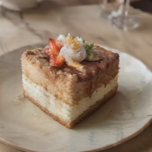 Cake on plate, table, realistic, strawberry, strawberry sauce,