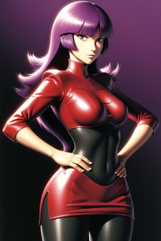 (masterpiece, best quality:1.2), 1girl, solo, sabrina, pokemon, long hair, purple hair, blunt bangs, red eyes, red sweater dress,(white gloves:1.2), black sash, (black leggings:1.1), (bodysuit:1.1), pantyhose, large breasts, knee boots, simple background <lora:SABRINA-15:0.9> <lora:kenSugimori1990sClassic_v12:0.8>