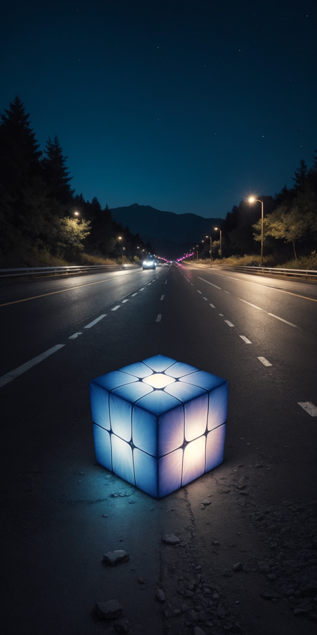(smooth rock cube:1.2), empty highway, night, city, (masterpiece:1.2), best quality