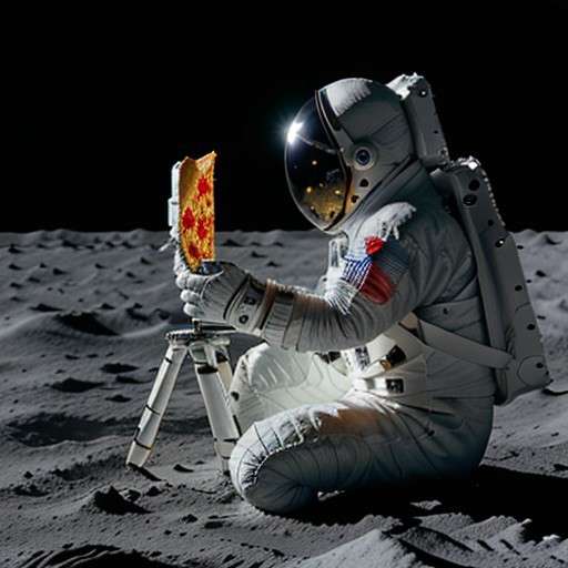 crystal skull wearing spacesuit helmet, sitting on the moon, holding a piece of pizza, spacesuit, FastNegativeV2, fcNeg, cry5t415ku11,