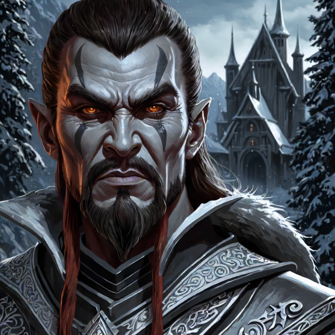 D&D style portrait, fantasy, digital art, Male Klingon of Mana, highly detailed, winter background, detailed face, shiny, elegant, cinematic atmosphere, set logical ambient background, magical composition, dramatic, beautiful detailed, ambient background, contemporary fine detail