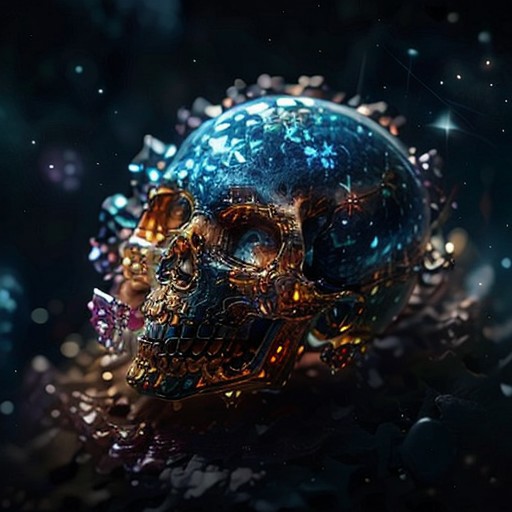 In the vast emptiness of the interstellar void, crystal skull omnipotent deities from separate dimensions collide. The Creator, a deity whose face is an ever-evolving canvas of galaxies and life, wields the power of creation, bringing forth stars, planets, and life forms with a wave of their hand. Opposite them stands the Destroyer, a god whose face is a shifting visage of decay and entropy, wielding the power of destruction, disintegrating celestial bodies and extinguishing stars. The clash of creation and destruction is a cosmic spectacle, with galaxies being born and dying in the wake of their unimaginable powers. highest quality, enhanced quality, creative, beautiful, vibrant, masterpiece, amazing details, amazing quality, amazing artist, sharp edges, detailed textures, full view, atmospheric lighting, amazing visuals, crystals fantasy, crystals, crystal, bg_imgs, cry5t415ku11,