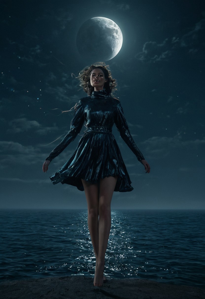 score_9, score_8_up, score_8_up, ((Cinematic composition)),((masterpiece)), (resplendent lighting), absurdres, very fine detail, 8k.,(fantasic illustration, dynamic lighting), two moons can be seen in the night sky, 1girl (full body), a beautiful woman hovering above the ocean summons magics (bright luminous trails of lights swirl around her:1.2), deep rich vibrant colours contrast with the matte greys and shadows in the background. dark shadow demons lurk just at the edge of the magical lights, <lora:flat2:-1.8>, (cinematic composition and lighting)