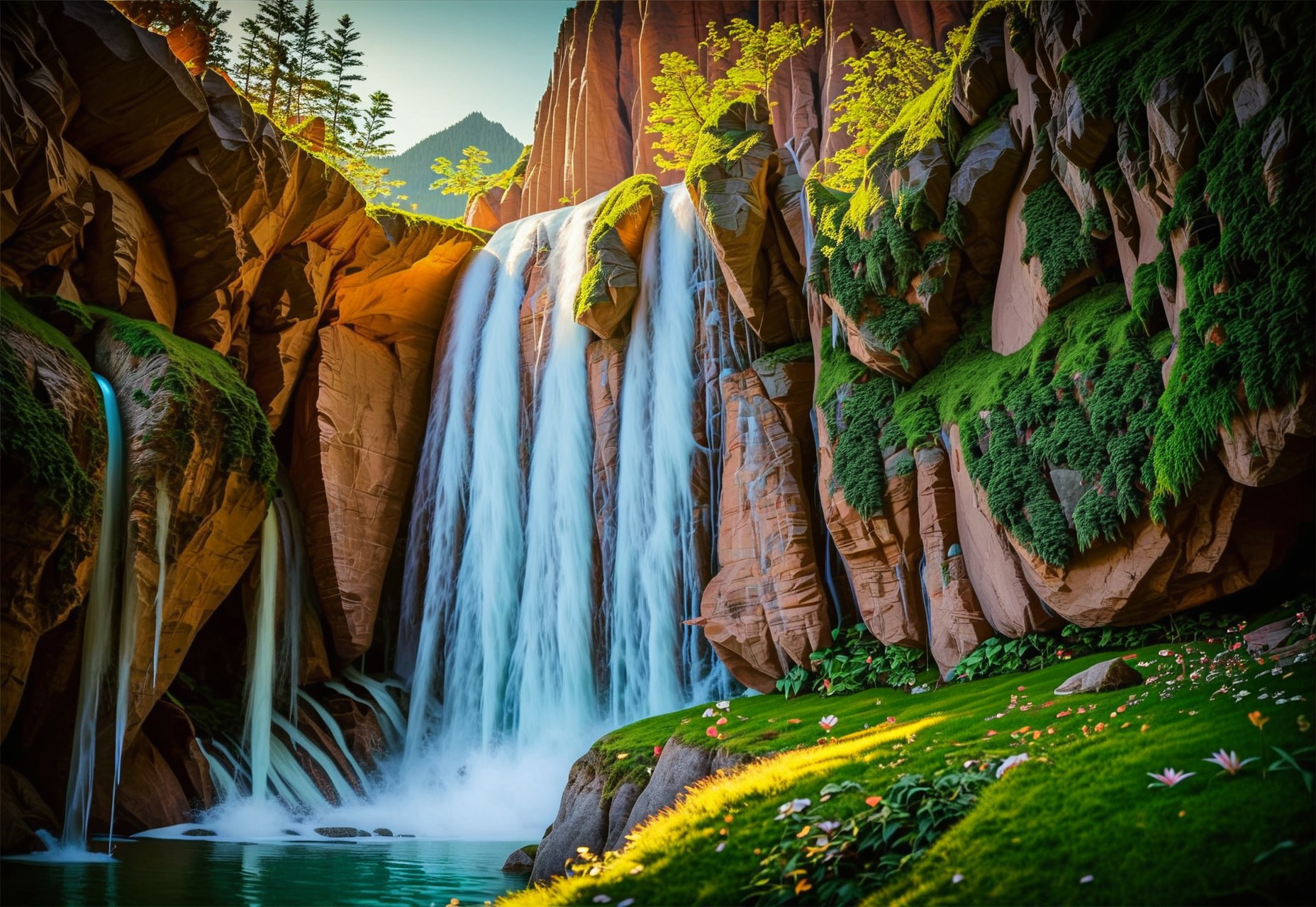 score_9, score_8_up, score_7_up, a waterfall in the mountains, raw, photo, realistic