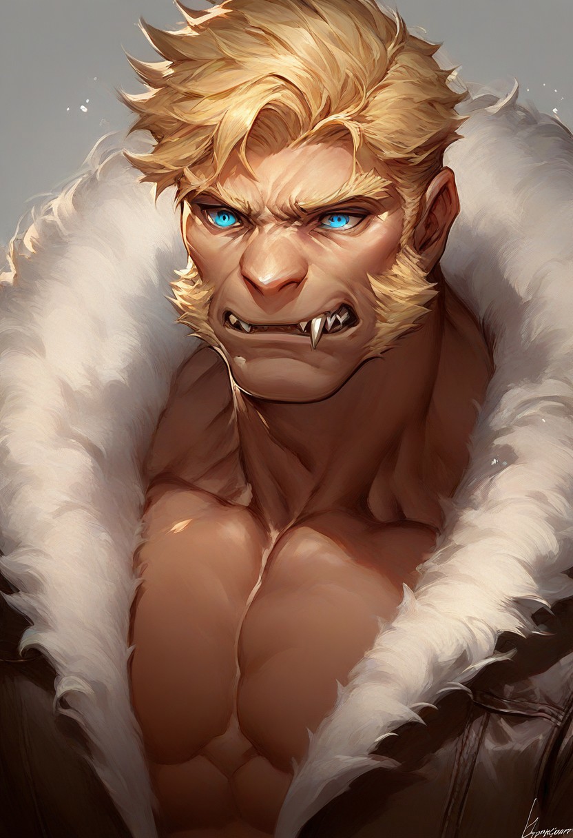easynegative, low quality, (worst quality, low quality:1.4), simple background, blurry, bad anatomy, disfigured, extra limb, stacked torsos, totem pole, ubbp, updn, dfc, bwu, multiple nipples, multiple limbs, multiple heads, mutated head, watermark, extra arm, text, words, exta penis, woman, girl, fcNeg, Neck Mane, Shoulder Mane, Body Tattoo,