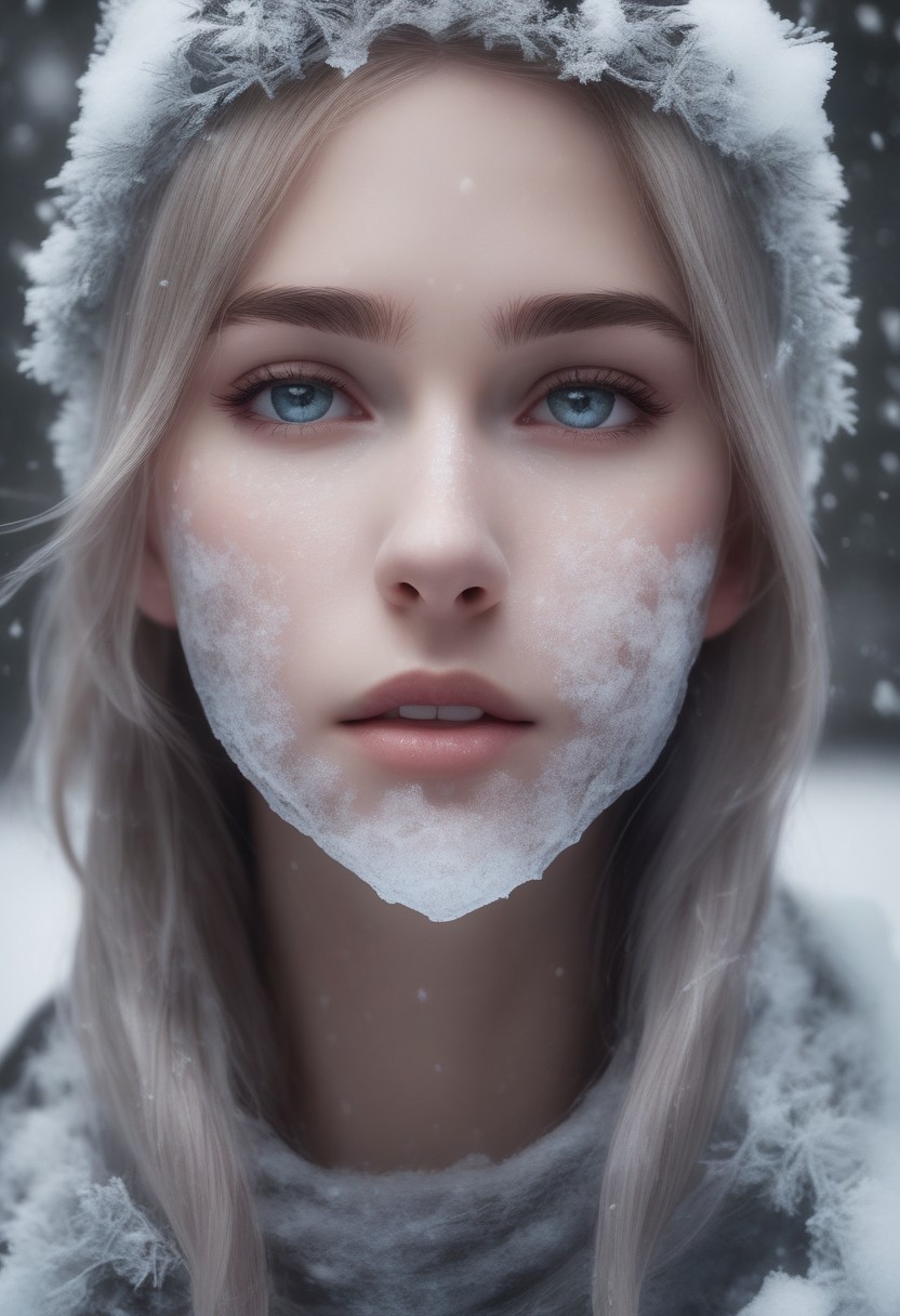 score_9, score_8_up, score_7_up, score_6_up, 1girl, face covered with ice, winter, pocus on the face, opened mouth