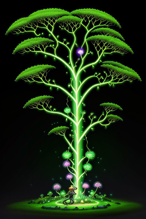 (gl0wing) surrounded by dodder flowers and ivy growing up an ancient tree <lora:add_detail:0.5> <lora:boldline:0.2>