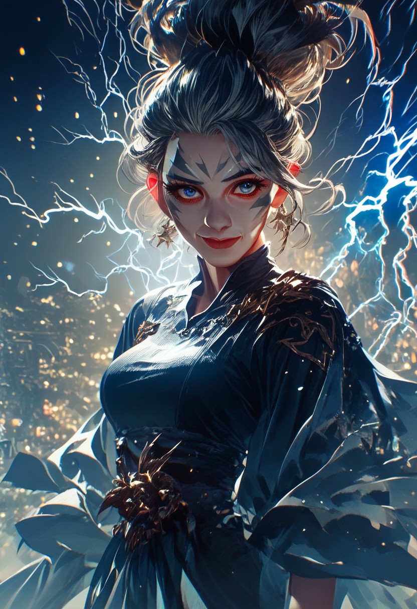 score_9, score_8_up, score_7_up, cute superhero 20 year old woman, night city, lightning, abstract background, wedding