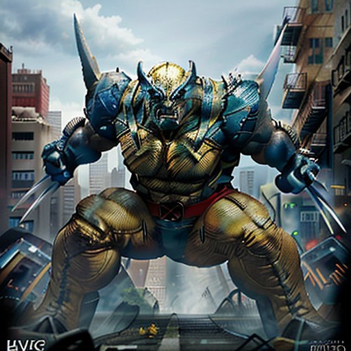 Wolverine, Godzilla, fighting in the streets of New York, 1930s, score_9, score_8_up, score_7_up, score_7, score_6_up, 1man, wolverine costume, 3 claws, Marvel's Sentinel,