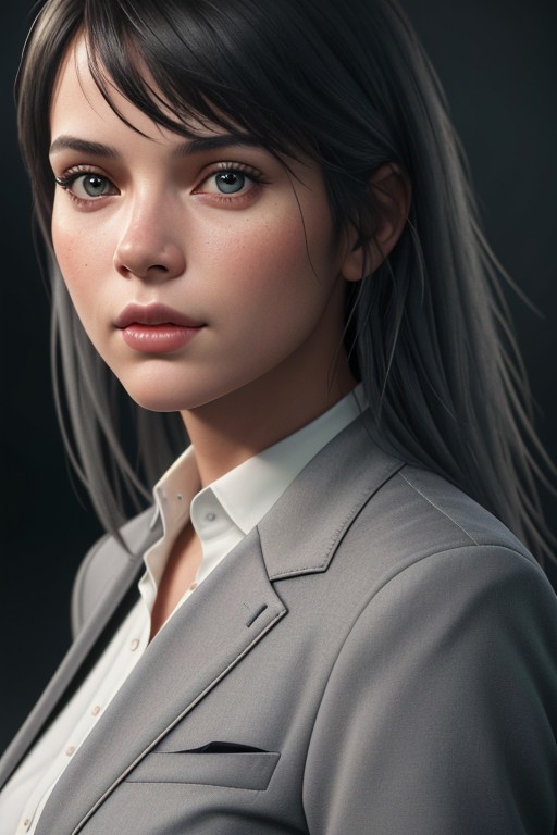 1 girl, young woman, beautiful face, upper body, (grey suit:1.4), black hair, slim face, (8k, RAW photo, highest quality, masterpiece), high detail RAW color photo professional photo, (realistic, photorealism:1.5), (highest quality), 8k HD high definition detailed realistic, detailed, skin texture, hyper detailed, realistic skin texture, armature, best quality, ultra high res, (photorealistic:1.4), high resolution, detailed, raw photo, Nikon D850 film stock photograph 4 Kodak Portra 400 camera f1.6 lens rich colors hyper realistic lifelike texture dramatic lighting Unreal Engine trending on ArtStation Cinestill 800,