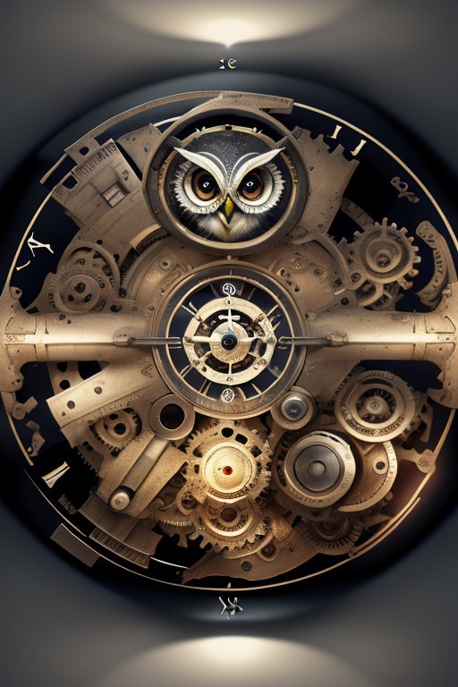 Steampunk Owl - An intricately designed owl with steampunk elements like gears, goggles, and a mechanical wing, perched on a vintage clock. ((centered 1:2)) <lora:perfection style:1> <lora:ScrapBuiltAI:0.8> scrapbuiltai