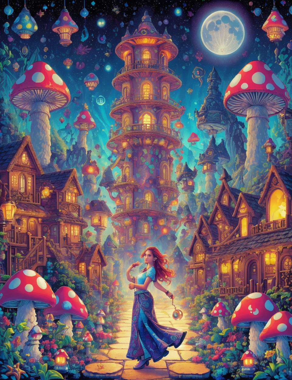 DonMShr00mK1ngd0mXL mushroom city, female female dragon human form, immense power, wisdom, and connection to fire, draconic features,scales, wings, wise, ancient being, knowledge, fantasy, elderly, firm, latin american, hazel eyes, split ears, button nose, receding forehead, athletic build, smoky eye makeup , light auburn half-up, half-down hairstyle hair, rage, gazing at the moon with reverence, channeling lunar energies, wearing maxi skirt with side slit, plaid shirt, , vivify (serendipity,steam devil,circulation,sandstone,cellulose insulation rotation,vibration,bose-einstein condensate,circle magic:1.0), singing an enchanting melody, infusing magic with musical notes, enchanted moonlight, celestia academy of sorcery, fiber cement siding,clay tiles roof, gas lanterns,luminescent deep-sea creatures, solar garden lights, <lora:DonMShr00mK1ngd0m-000008:0.6>