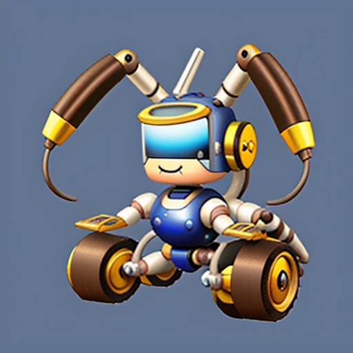 welding robot, blue, cute, chibi