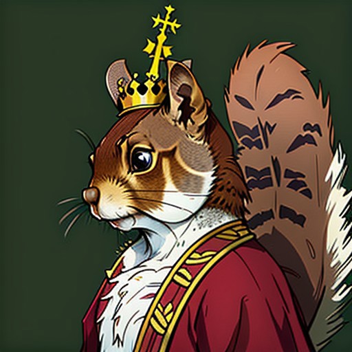 A squirrel wearing a king crown
