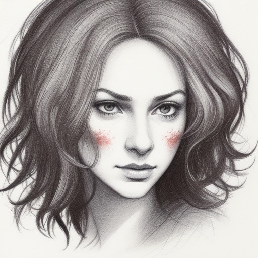 Red and White portrait of a Princess. Expressive. Forlorn. Style ink splotches. White Background. Amateurish fast rushed lines.