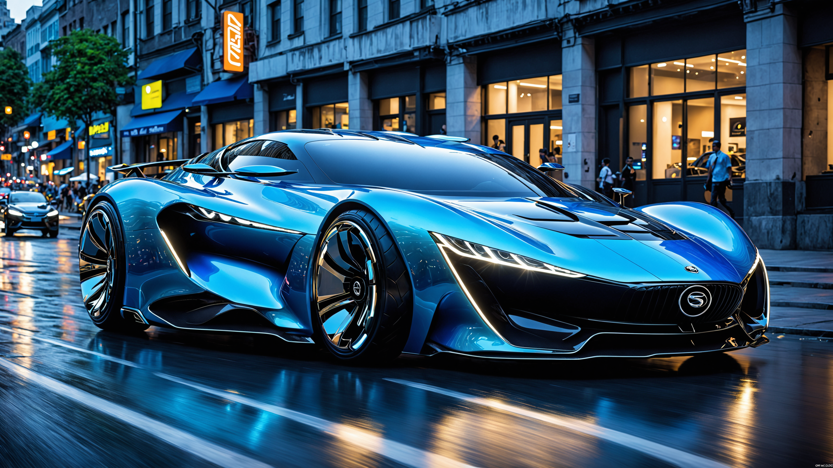 cinematic film still snake, A futuristic car, rendered in lush digital art, showcases a sleek, aerodynamic design with curved lines and sharp angles, evoking a sense of high-speed velocity. The metallic body glimmers in the light, accentuated by neon accents that pulse with an otherworldly energy. The wheels, a mesmerizing blend of chrome and carbon fiber, appear to rotate in mid-air, as if defying gravity. Against a backdrop of deep, electric blue, the car seems to embody the essence of innovation and progress, transporting the viewer to a world of tomorrow. ImgFixerPre0.3 <lora:more_details:1> . shallow depth of field, vignette, highly detailed, high budget, bokeh, cinemascope, moody, epic, gorgeous, film grain, grainy