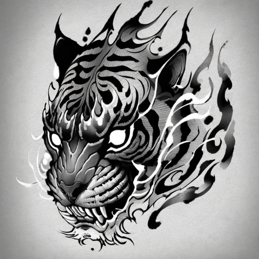 <lora:1y0n:1>1y0n Cincinnati Bengal, tattoo design