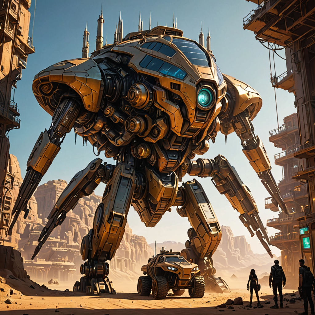 (fantastic), confident, ultra-detailed, best shadow, best quality, masterpiece, 4k, intricate detail, cinematic lighting, amazing quality, prefect lighting, very aesthetic, official art, gigantic huge ((mechanical)) high tech {floating machinery|shell|hive|honeycombs} cyberpunk, science fiction, desert