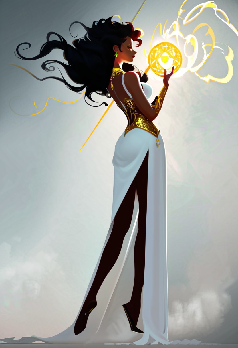 score_9, score_8_up, score_8_up, ((Cinematic composition)),((masterpiece)), (resplendent lighting), absurdres, very fine detail, 8k. full body gorgeous dark skin beautiful black goddess woman Beautiful Gorgeous Goddess with gorgeous dark brown skin. beautiful perfect face, shapely hour-glass figure long flowing hair, fully clothed in a flowing white dress and gold accessories, she's floating in the sky with gold lightning and dark clouds behind him, high detail, realistic photo, high detail, digital painting, cinematic, stunning, hyper-realistic, sharp focus, high resolution 8k, insanely detailed, verybadimagenegative_v1.3, Style-Volumetric, zPDXL2, d4q1r1s1yl3