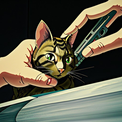 A Japanese Cat warrior holding a shotgun, High Detail, Perfect Composition, sharp focus, complex lighting, easynegative, ghibli style,