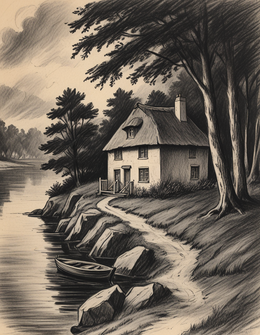 novuschroma71 cottage by the water charcoal drawing <lora:novuschroma71 style:1>, <lora:sdxl_lightning_8step_lora:1>