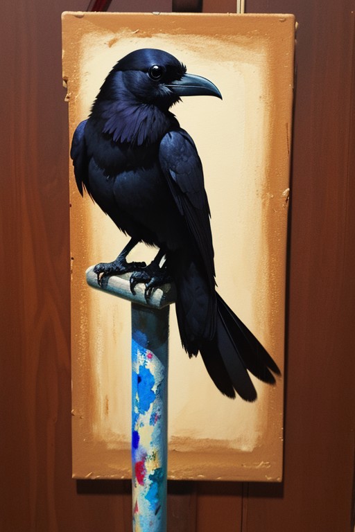 impasto painting, paint, raven sitting on a pole<lora:impasto painting:0.8>