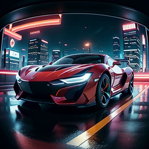 Tron lineS, high detailed, dark lighting, perspective, forced perspective, fisheye lens, dynamic angle, futuristic black car, scifi car, flying car, in the sky, skyscrapers, red neon lighting, tron cars, hovercar, neon rim