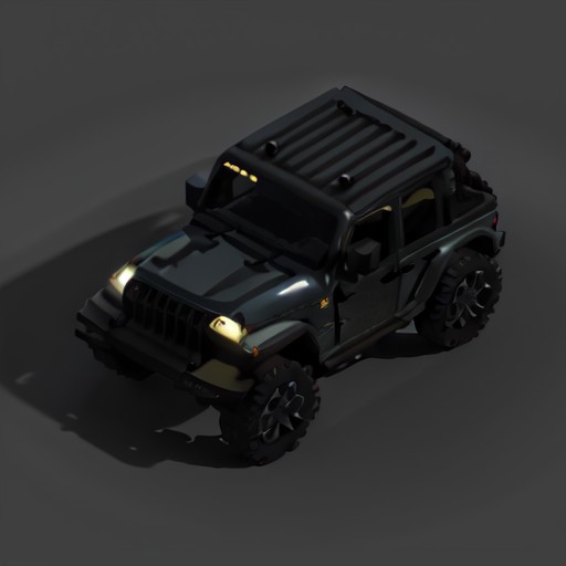 Jeep Wrangler, car, SUV, isometric voxel, isometric, voxel, extremely detailed, ambient lighting, on an interlock brick road
