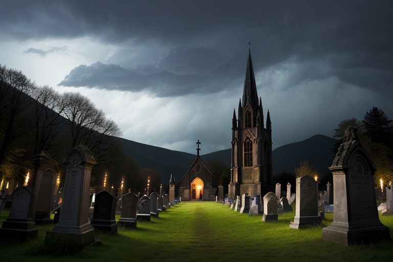 score_9,score_8_up,score_7_up,score_6_up,score_5_up,score_4_up,absurdres,masterpiece,outstanding,vibrant,landscape, graveyard, gothic church, thunderstorm, ghostly, ethereal, night scene, night, dark, magic, monolith, tomb, gargoyle
