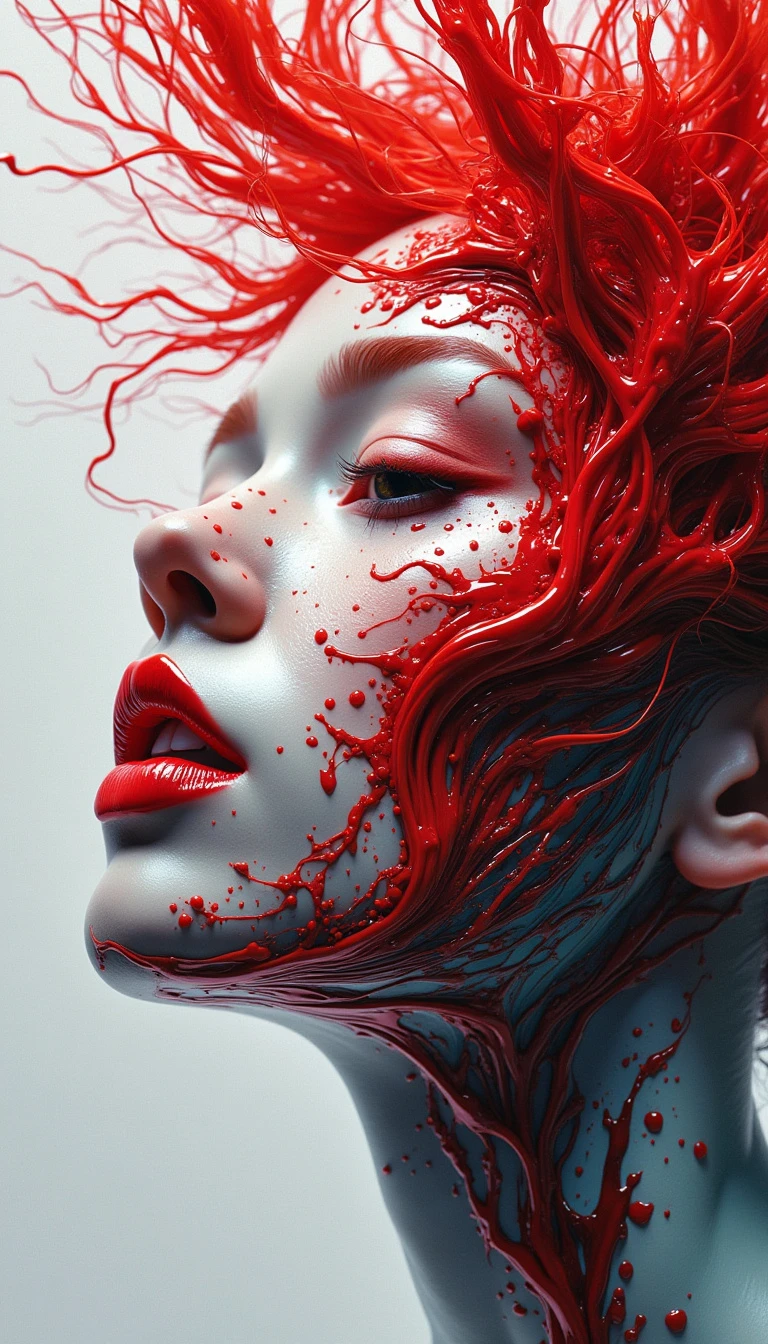 photorealistic, Crimson Red, view White Ink Flow - 8k resolution photorealistic masterpiece, intricately detailed fluid gouache painting, by Jean Baptiste Mongue, calligraphy, acrylic - colorful watercolor art, cinematic lighting, maximalist photoillustration, 8k, HD, art intricately detailed, complex resolution conceptual, elegant realism, expansive, fantastical, psychedelic, dripping paint, cyborg style, steampunk style, cyborg, android, steampunk, film still, Salvadordali style, noise reducer.