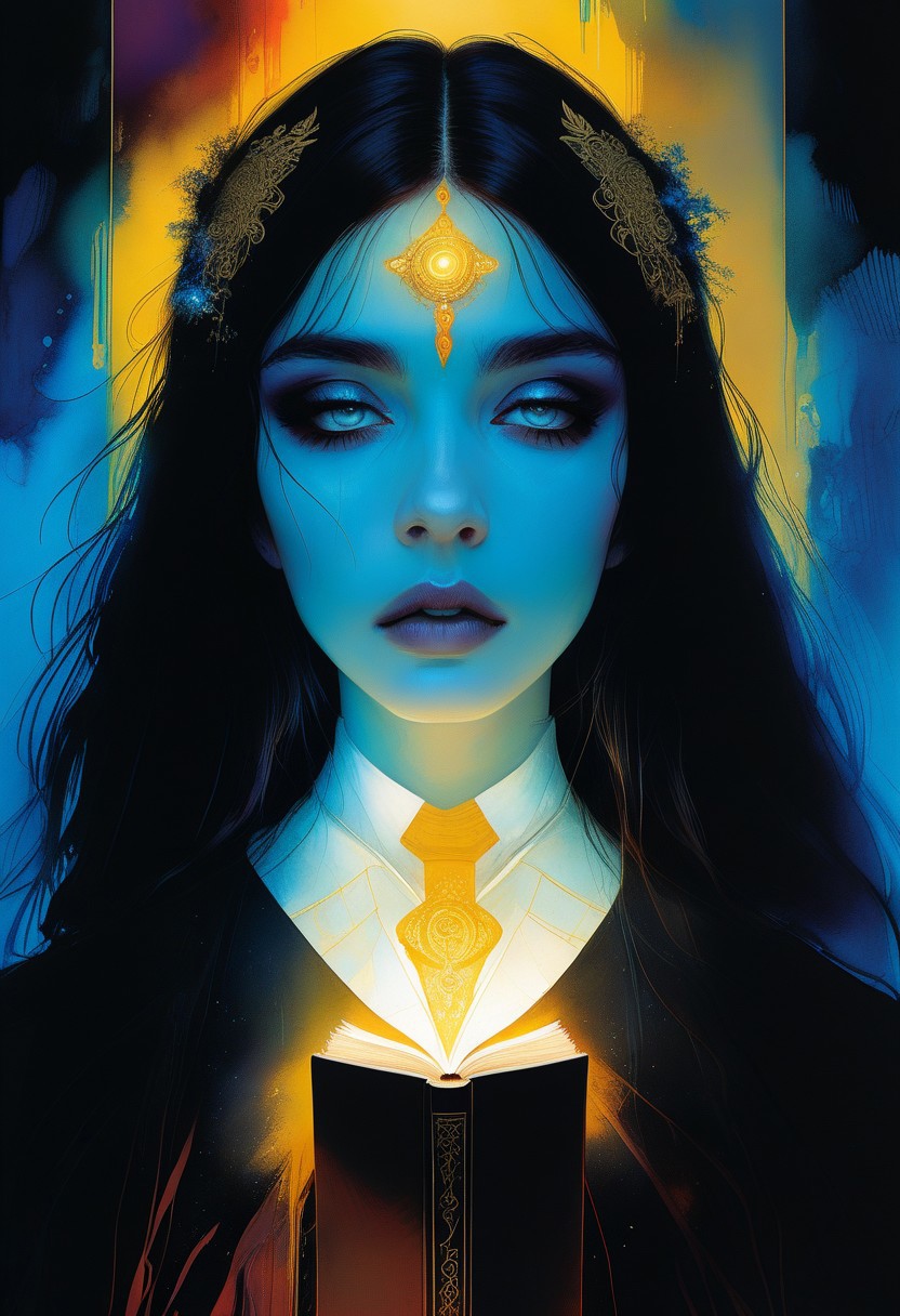 score_9, score_8_up, score_8_up, ((Cinematic composition)),((masterpiece)), (resplendent highlighting), 8k. (Tarot card). 1girl, a beautiful oracle with an open glowing book, a revealing dress with a slit and cut outs, ab crack ((full body)) surreal, intense colors, liquid, unreal parts, alluring, fluid, perfection, gothic. (skin dynamically highlighted), Illustration, (klimt:0.8) (Bill Sienkiewicz:1.5). maximum detail, Chinese watercolor and ink technique. Gold leaf highlights. <lora:xl_more_art-full_v1:0.4> <lora:epi_noiseoffset2:1>3