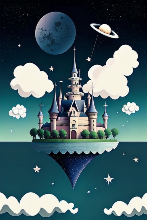 castle, fluffy, floating, clouds, sky, stars, space,