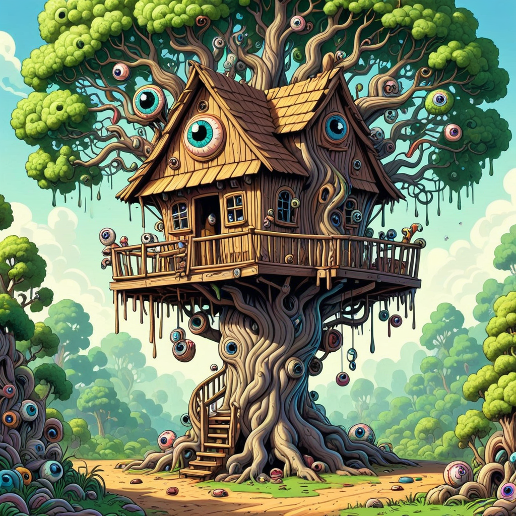 <lora:TrippyStyleSDXL:1>tr1ppystyle Treehouse