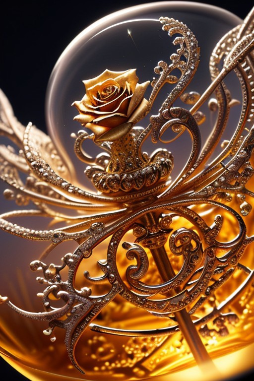 a lonely beautiful rose made of amber, atmospheric, sparkly, incredible, dreamy, magical, backlit, award winning, intricate details, ultra details, realistic, professional, highly detailed, super sharp, close up, fantastical, enchanting, storybook style, golden hour light . Surreal, ethereal, dreamy, mysterious, fantasy, highly detailed, no humans