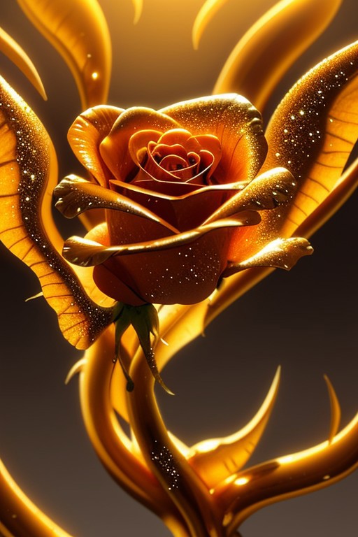 a lonely beautiful rose made of amber, atmospheric, sparkly, incredible, dreamy, magical, backlit, award winning, intricate details, ultra details, realistic, professional, highly detailed, super sharp, close up, fantastical, enchanting, storybook style, golden hour light . Surreal, ethereal, dreamy, mysterious, fantasy, highly detailed, no humans