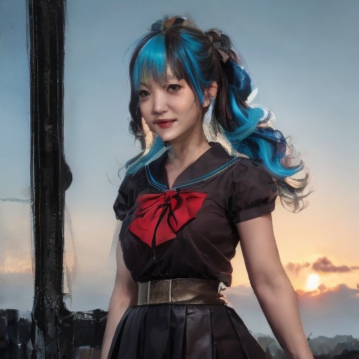 red dress, dream like, fluffy clouds, thin veil of mist, eagle, extremely detailed, detailed face, happy smile, sunset